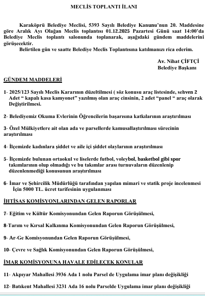 ARALIK 2025 MECLİS İLANI