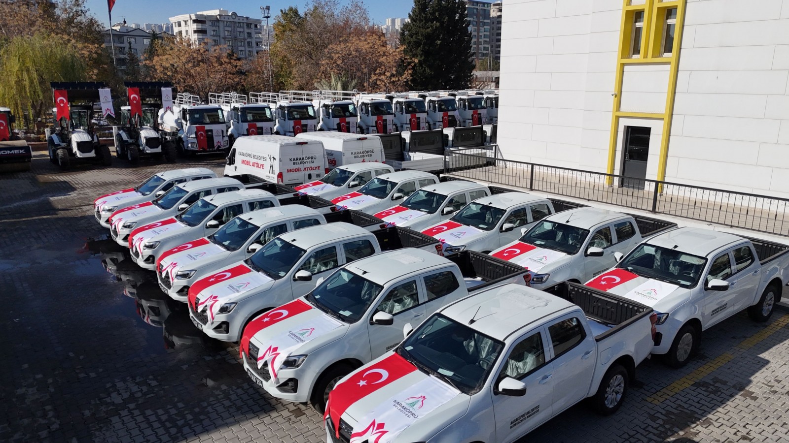 Karaköprü Belediyesinin hizmete aldığı 71 aracın içerisinde kamyonlar, iş makineleri, çöp toplama araçları, binek kamyonetler ve binek araçlar bulunuyor.