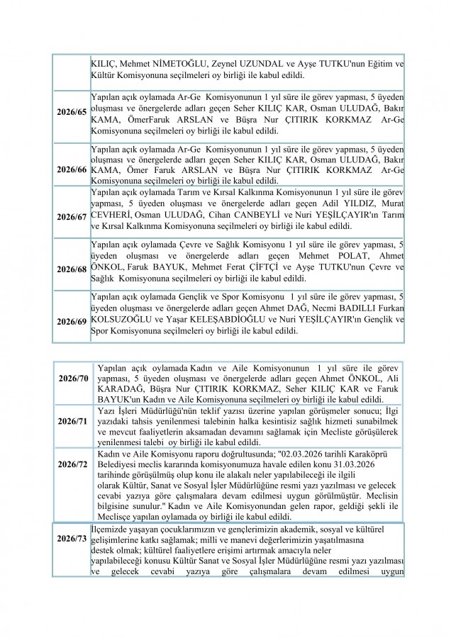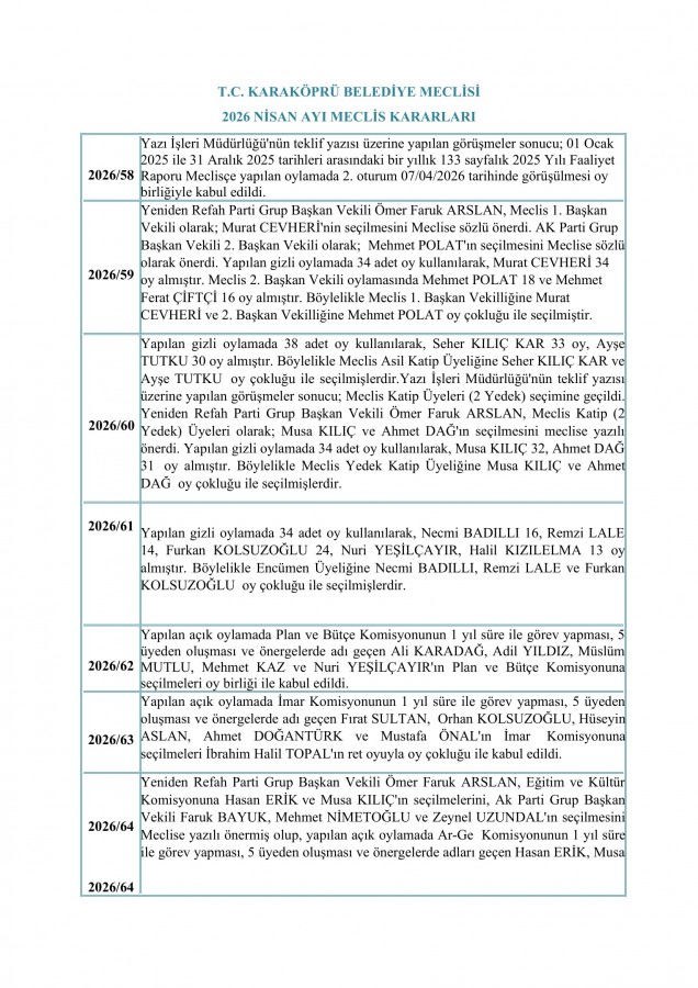 NİSAN 2026 MECLİS KARAR ÖZETLERİ